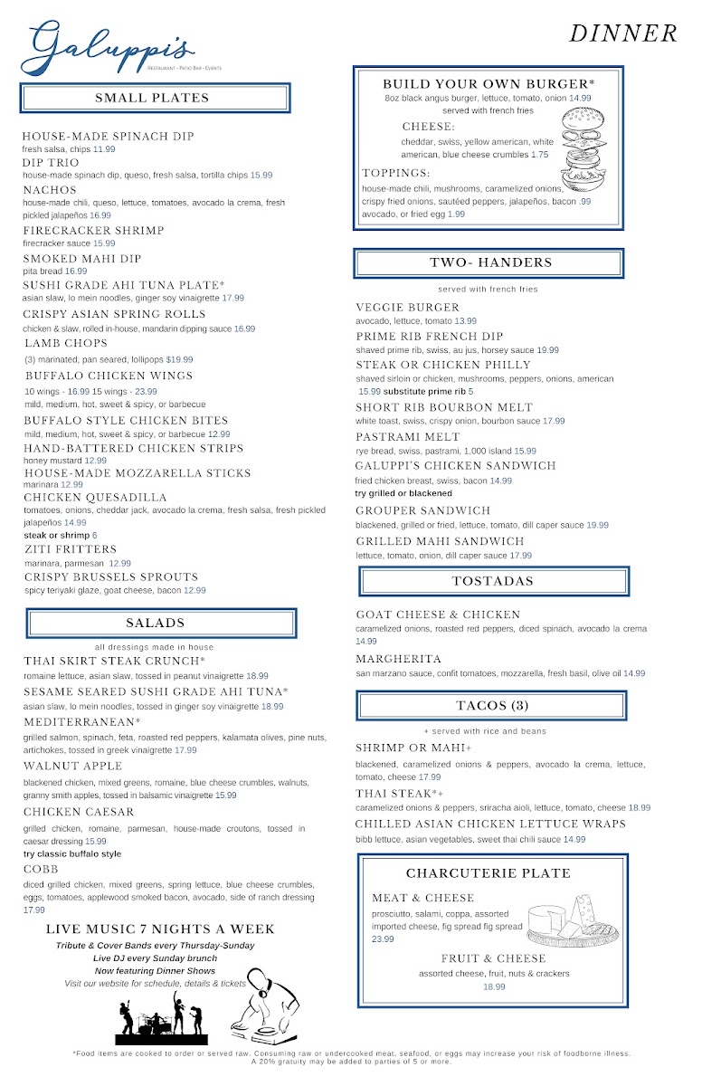 Welcome to Galuppi's, a delightful dining experience nestled at 1103 N Federal Hwy, Pompano Beach, FL. With an enticing menu designed to cater to a variety of tastes, Galuppi's stands out with its full dinner plates, including the juicy 10oz New York Strip and succulent Danish Baby Back Ribs. Each dish is crafted with fresh ingredients, elevating comfort food to an art form.